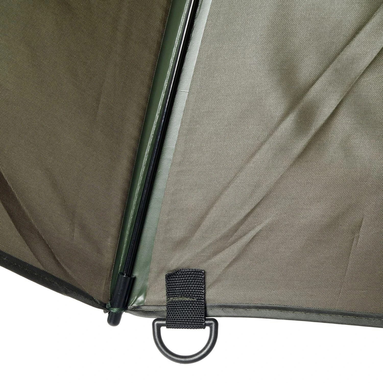 Tough hardwearing nylon material with reliable fully taped seams over a steel frame and ribs. With a simple to use tilting mechanism, or you can remove the central pole and re-position at a fixed angle. In addition, handy D rings give you the option to peg the edges down in serious weather.