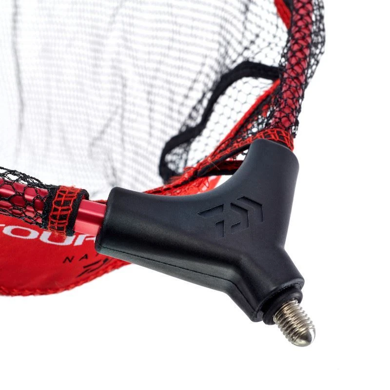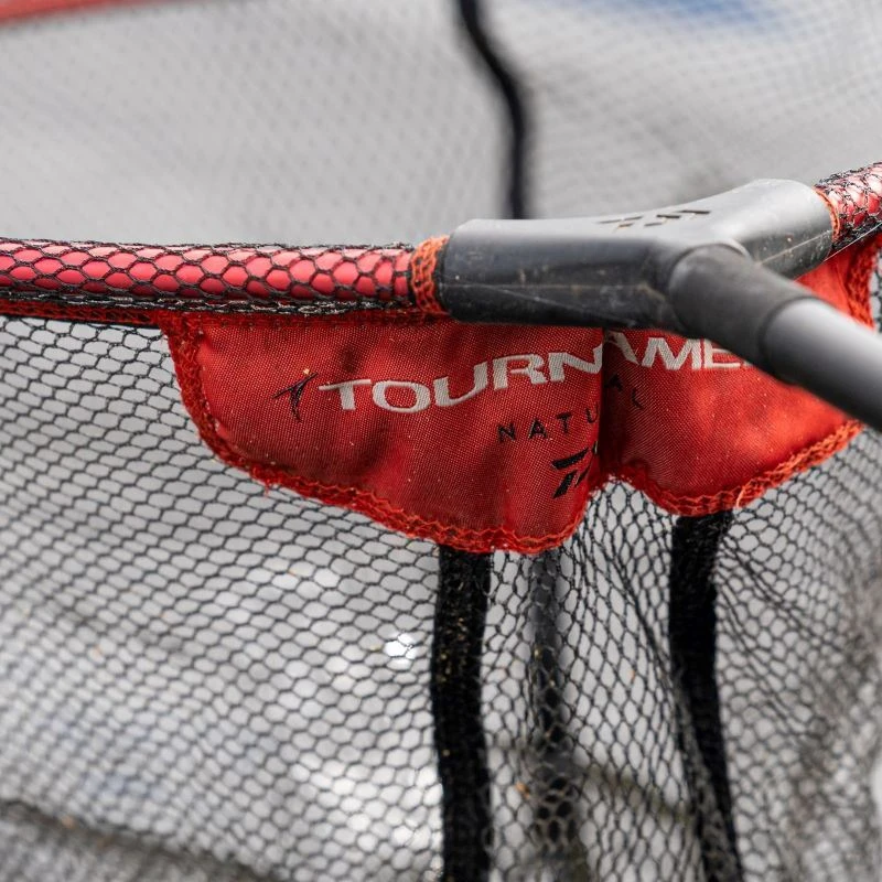 Daiwa Tournament Natural Net, available in 45cm and 50cm size options. Featuring a super soft open weave mesh ideal for use with barbed hooks when tackling natural venues. Mounted to a strong lightweight aluminium frame and sturdy spreader block.