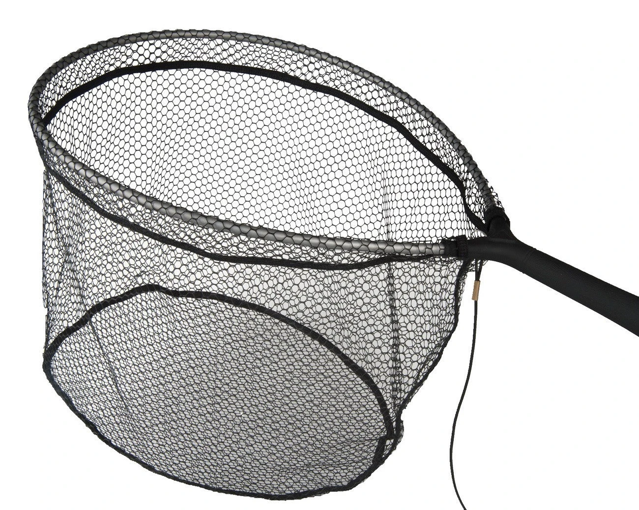 An easily transportable rubber mesh net with knotless mesh sides for manoeuvrability in fast flowing water. The handle features an integrated magnet as well as an elasticated lanyard.