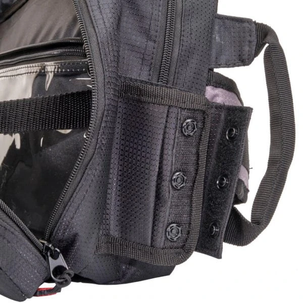 Taking a closer look at the bag storage, the front of the bag has a full-length zip pouch which is ideal for storing tools, line and other bits of kit. The front section of the bag folds down bench style, giving you a working area with your boxes and tackle on and for quick access to often-used lures and bits and bobs. A clear zipped pouch adds extra storage. The rear compartment is for bigger tackle boxes with another clear, zipped pouch for extra storage. To make it comfortable, the back of the bag is padded. It comes with quality zips with HTO custom branded toggles for ease of use.