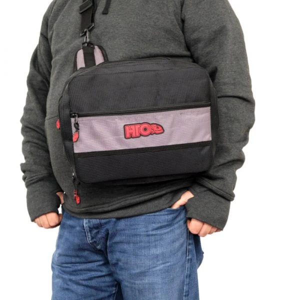 A versatile, neat and compact bag ideal if you’re a mobile lure angler. Designed to store lure boxes, line, terminal tackle and any other tackle you might need for a session, all handy and easy to get to. Made from durable, water-resistant and wipe clean 420D Oxford Nylon material, this bag is designed with practicality in mind. It can be worn like a sling bag over your shoulder or converted into a waist bag by attaching the padded strap to the differently positioned D rings around the bag. The strap has a spare D ring for attaching tools and also has MOLLE style webbing straps for attaching other close to hand items. To the side, there is a fold that can be secured with velcro and clips, which is ideal for storing a landing net. A handy carry handle makes it easy to pick up when moving short distances without having to put it over your shoulder or around your waist.