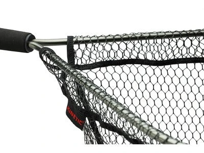 Superb landing net for bigger fish caught from shore, in small boat or when wading. This short handle net with a smart magnetic quick release function lets you keep the net on your back or close enough to always grab it when a big seatrout, trout, char or salmon needs to be landed. Catch & release proof!