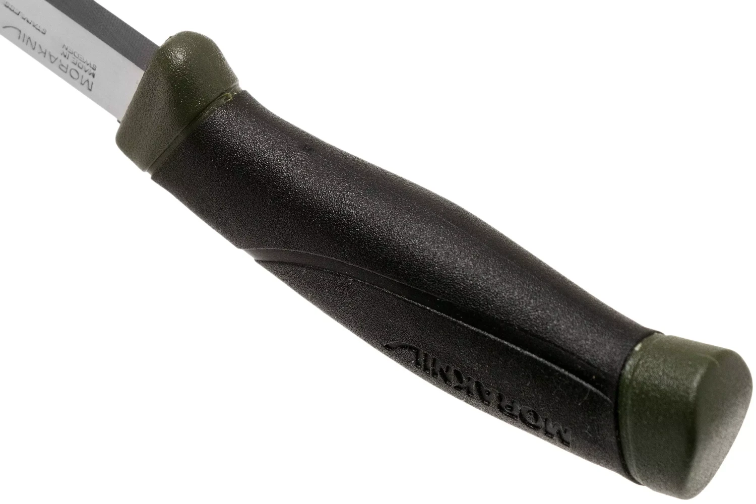 The Mora Companion MG stainless is a sturdy fixed blade for a very reasonable price. The knife is quite lightweight and has perfect dimensions for comfortably wearing it on your belt. The rubber handle is very comfortable and also offers a superb grip.