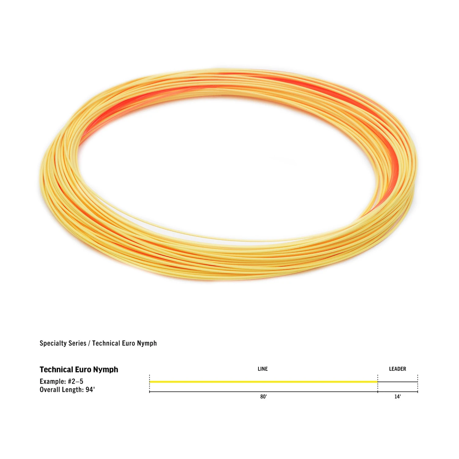 RIOβs Technical Euro Nymph line has all the assets for the modern nymph angler. Built on a monofilament core that creates a stiff, slick line for quick feeding and less line sag between the rod guides, and an ultra-thin diameter to maximize sensitivity, and for lightning-fast hook sets. In addition, the core extends past the front end of the line to become a leaderβresulting in no knots to get caught in the guides. The level line can be cut to length (from the back), allowing anglers to tune the line to the perfect length. The leader is .013″ in diameter, pink to be easily seen, and is level, so can also be cut and tuned for varying situations.