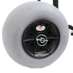 The large, 18cm pneumatic wheels make this a go to anywhere loading trolley. Pneumatic wheels are more efficient at spreading the load of the trolley weight, so it can be used over sand, shingle, small rocks, piers and breakwaters. Designed to take the strain out of any long walk to a fishing mark and for boat anglers, who are taking a large amount of kit to and from the boat.
