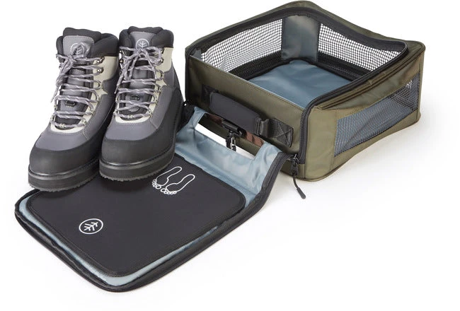 The Wychwood Boot Bag is a high quality walking boot or wading boot bag made from a hard-wearing waterproof 1680D and 840D material featuring an easy change neoprene mat for standing on when changing footwear outdoors.